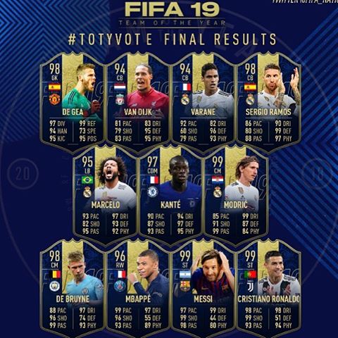 Este año, al igual que el anterior, siguieron con el cambio de formato a la hora de elegir los TOTY. Los 11 jugadores que salieron fueron elegidos por los usuarios de FIFA en una votación online.